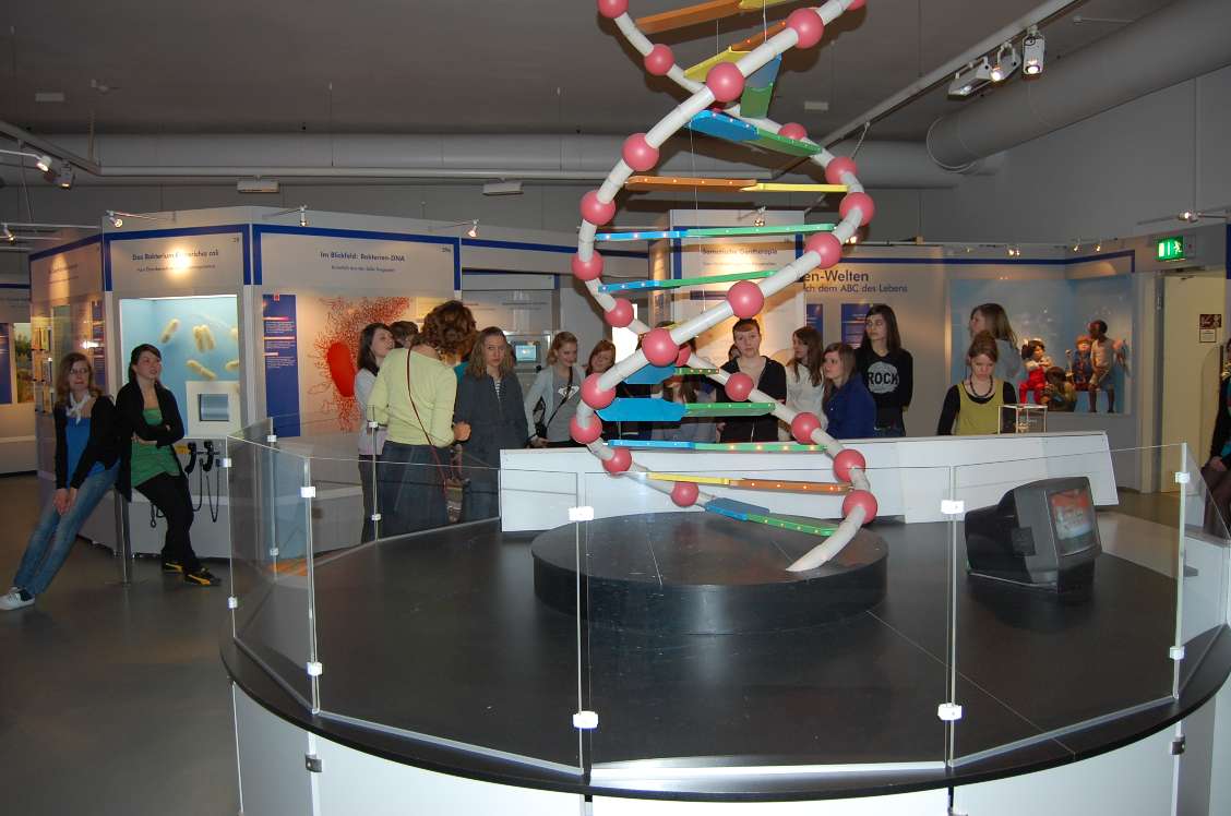 Nach dieser ersten Herausforderung hatten wir uns eine Pause redlich verdient, die wir im Freien bei traumhaftem Sonnenschein mit einem Eis verbrachten. Im Anschluss daran folgte eine Führung durch den neuen Bereich „Gentechnik“ des Museums, in dem wir unter anderem ein riesiges, mehrere Meter großes DNA-Modell betrachten konnten.
