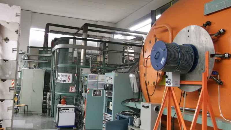 Anschließend führte Herr Beck uns durch die Halle, in der der Beschleuniger steht. Wir hatten Glück und konnten mal innen hinein schauen, da an ihm gerade Wartungsarbeiten ausgeführt wurden. An sich wäre die Führung wohl sehr interessant geworden, doch leider haben wir lautstärkebedingt oft nichts oder nicht viel der Erklärungen verstanden.