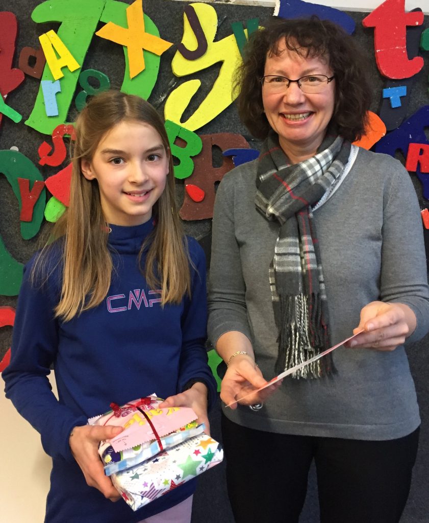 Als Schulsiegerin ging aus diesem Wettbewerb Klara Härning (6a) hervor. Unsere Direktorin, Frau Susanne Kofend, gratulierte noch einmal allen drei teilnehmerinnen und überreichte der glücklichen Siegerin eine Urkunde und ein Buchgeschenk.